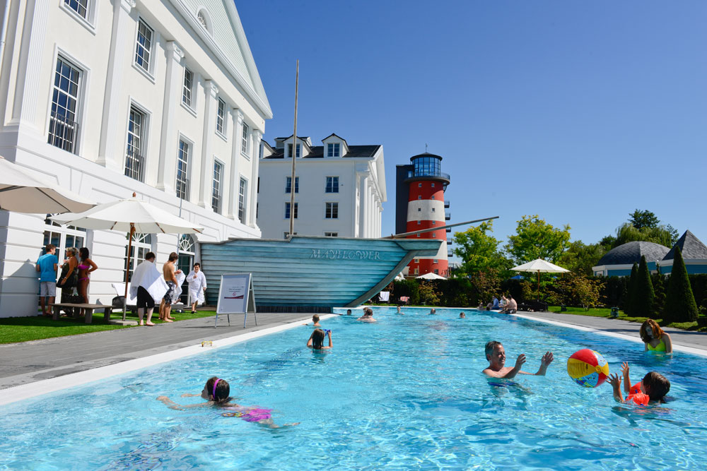 Der 35 Meter hohe Leuchtturm lotst in einen Urlaubshafen der besonderen Art. Das fünfte der insgesamt sechs Europa-Park Hotels entführt seine Gäste ins Neuengland des 18. Jahrhunderts.