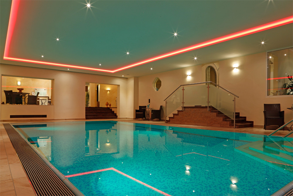 In unserer 1500 m² Wellness-Oase „Eichelbergquelle“ erwartet Sie ein Schwimmbad (5×10 m, 29-30°C), eine Soleinhalation & Infrarotkabine, finnische Sauna, Dampfsauna und verschiedene Ruheräume mit Panoramablick. Im Aussenbereich finden Sie das Schwarzwälder Saunahaus mit 2 grosszügigen Panoramasaunen und einem Panorama-Ruheraum im Obergeschoss. Zum Abkühlen empfehlen wir Ihnen unser Tauchbecken und eine Kübeldusche.